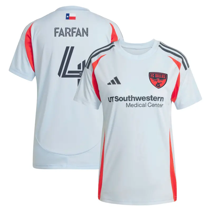 Women’s FC Dallas Marco Farfan adidas Light Blue 2025 The Inferno Kit Replica Player Jersey