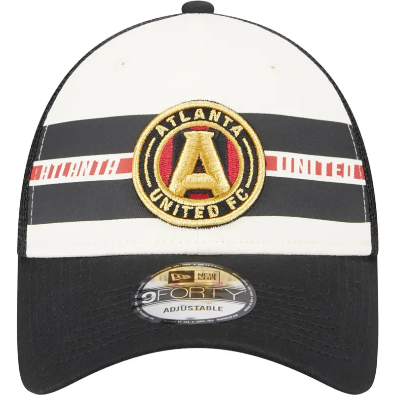 Men’s Atlanta United FC New Era White/Black Team Stripes 9FORTY Trucker Snapback Hat