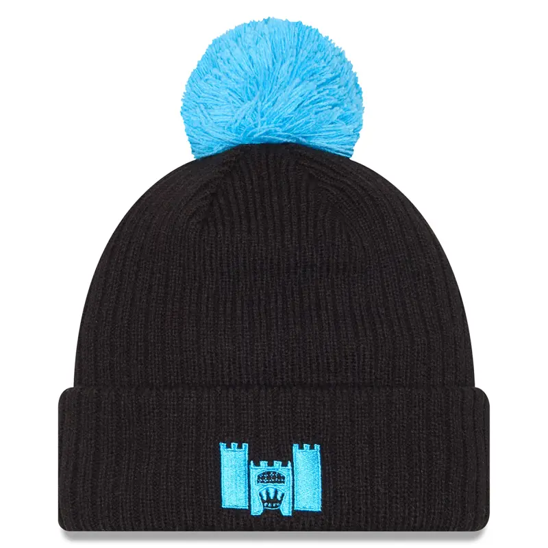 Men’s Charlotte FC New Era Black Jersey Hook Cuff Knit Hat with Pom