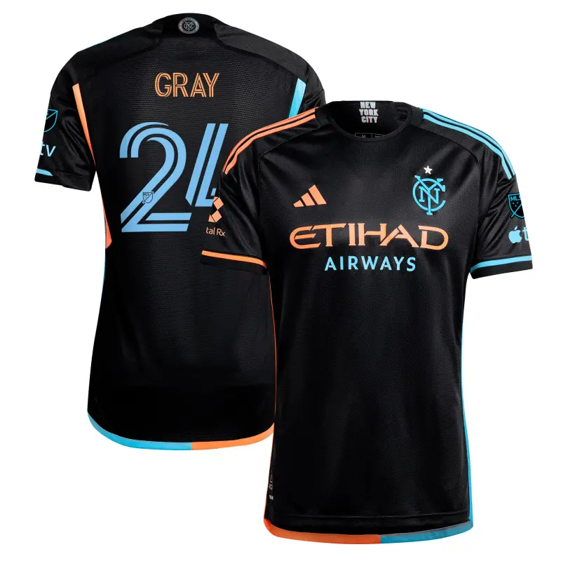 Men’s New York City FC Tayvon Gray adidas Black 2024 24/7 Kit Replica Player Jersey