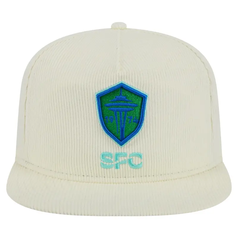 Men’s Seattle Sounders FC New Era Cream 2025 Kickoff Snapback Golfer Hat