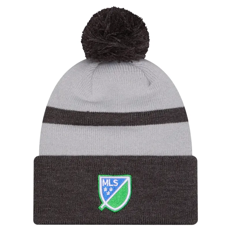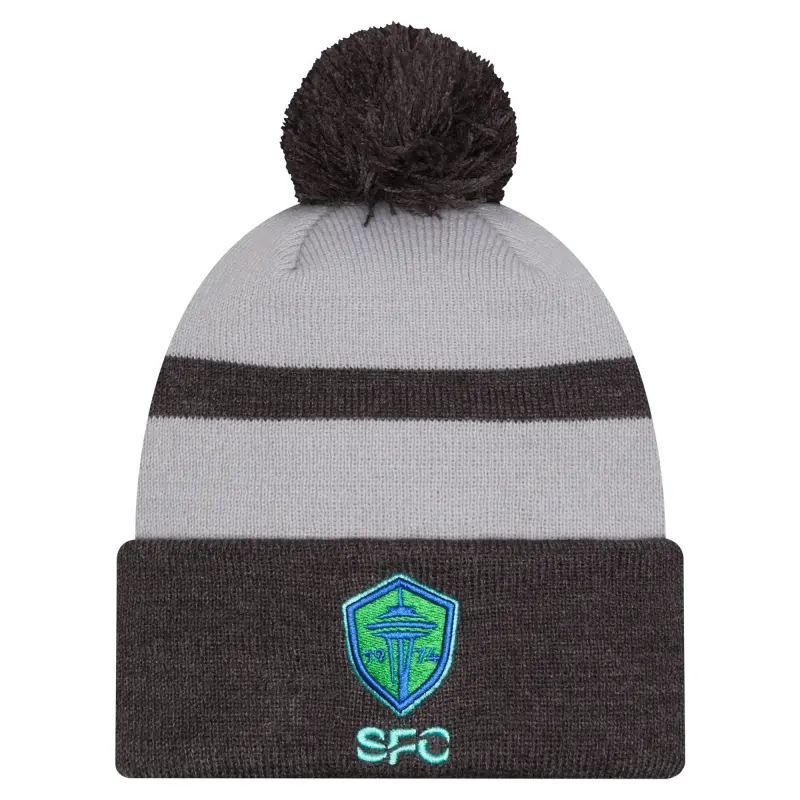 Men’s Seattle Sounders FC New Era Gray 2025 Kickoff Cuffed Knit Hat with Pom