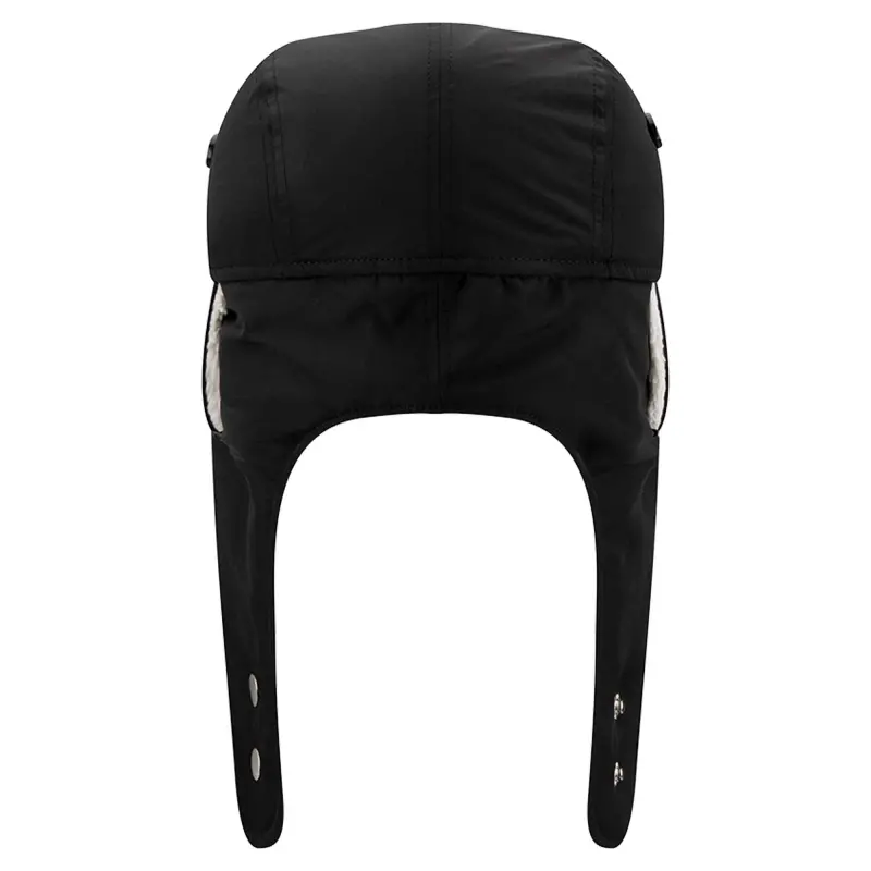 • Ear flaps with button closure