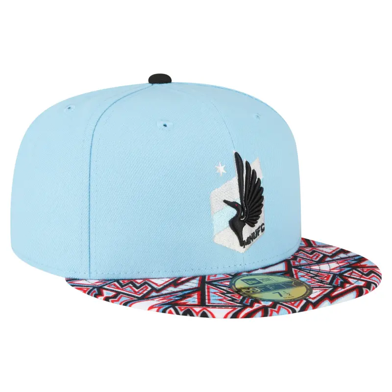 Elevate your Minnesota United FC headwear collection with this Element Tech Pack 59FIFTY hat from New Era. This vibrant cap features a contrasting abstract bill that helps it stand head and shoulders above other caps. The fitted structure offers a snug fit, and the bold embroidered Minnesota United FC graphics announce your devotion on match day.