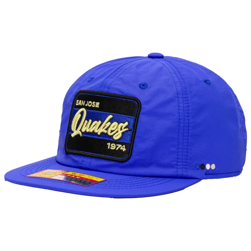 Show your support for San Jose Earthquakes in bold fashion with this Fiji Adjustable Hat. This San Jose Earthquakes hat features an embroidered fabric applique with the founding year prominently displayed across the front panels, making your love for the club undeniable. With embroidered graphics on the side panels and a classic six-panel design with eyelets, this hat delivers a stylish and comfortable fit for everyday wear.