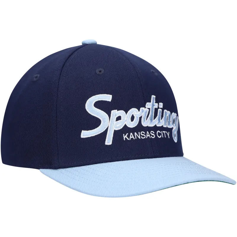 Men’s Sporting Kansas City Mitchell & Ness Navy Team Script 2.0 Stretch Snapback Hat
