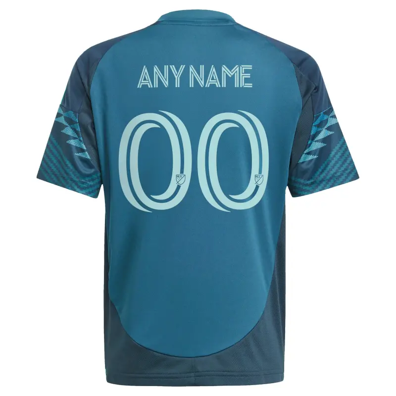 • We want fans to celebrate their fandom by customizing and personalizing certain products. For this customizable product, we invite customers to tell us how they would like their preferred name or text to appear by typing it into the indicated field. However, because a customer can type proposed customization text into the field and complete the order through the website, not all proposed customization text will be accepted. Please note that Fanatics may reject and cancel any customization order for any reason, including messages deemed offensive or inappropriate. Get your kiddo ready to root on their favorite MLS team with this Seattle Sounders FC 2025 The Salish Sea Kit Replica Custom Jersey from adidas. Thanks to AEROREADY technology, your young fan will feel great during every match this season. The fresh Seattle Sounders FC graphics and designs will stand out any time they wear it.